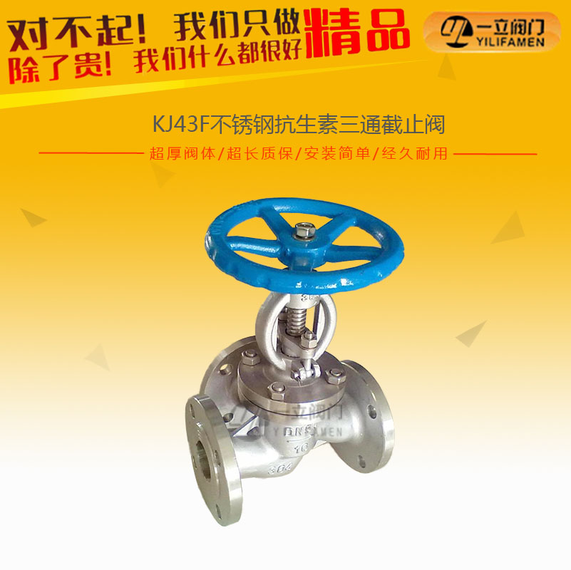 KJ43F三通抗生素截止閥 一、產品簡介: KJ43F三通抗生素截止閥 主要材質有鑄鋼和不銹鋼兩種,...